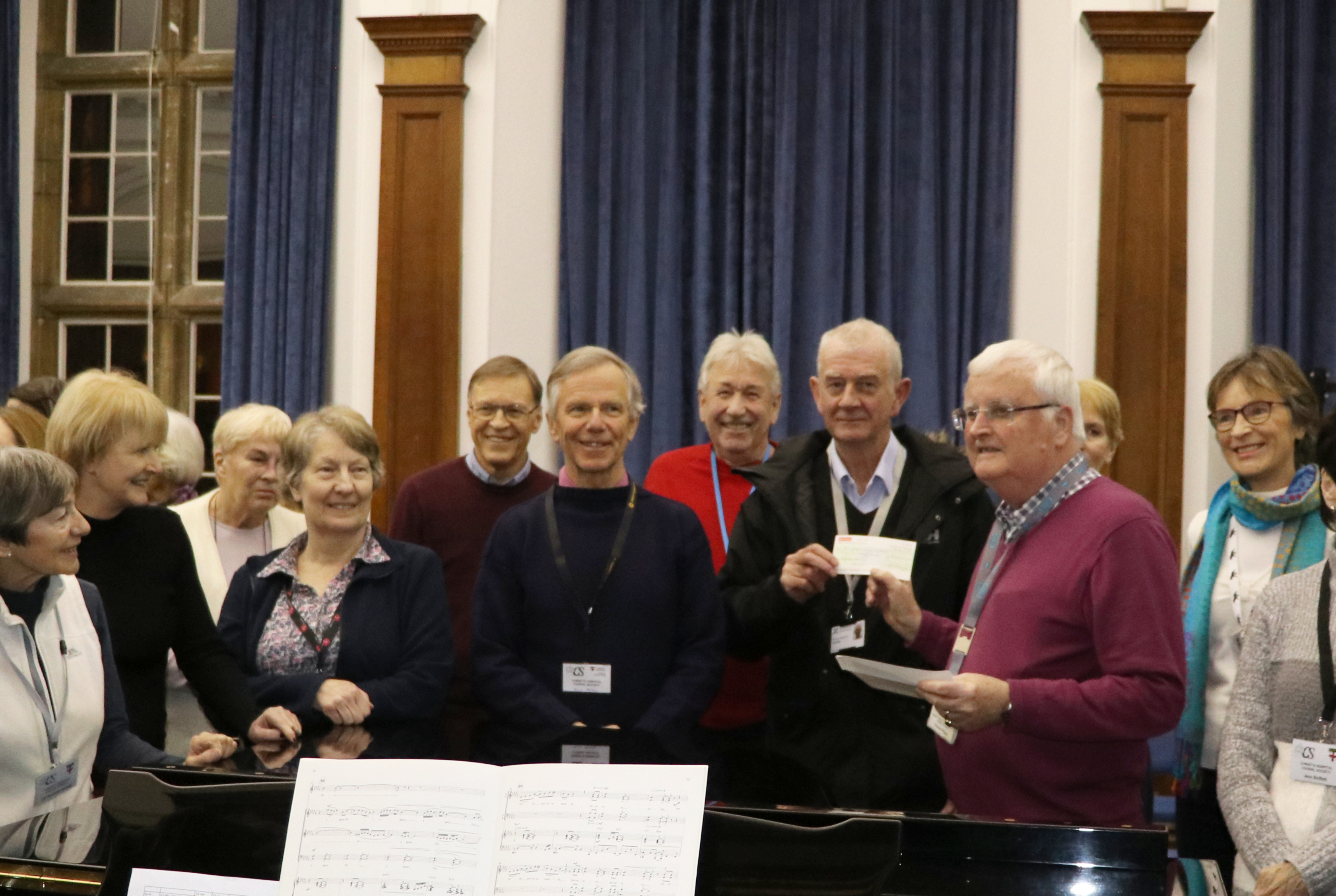 At our evening rehearsal on Thursday 6th February the choir were delighted to be able to hand a cheque for £900 to Air Ambulance Kent Surrey Sussex, our chosen charity for the funds raised through our Christmas Concert in December 2019. The charity were represented by Richard Draycott, a volunteer with "AAKSS" and the cheque was presented by our Treasurer Richard Phipps.